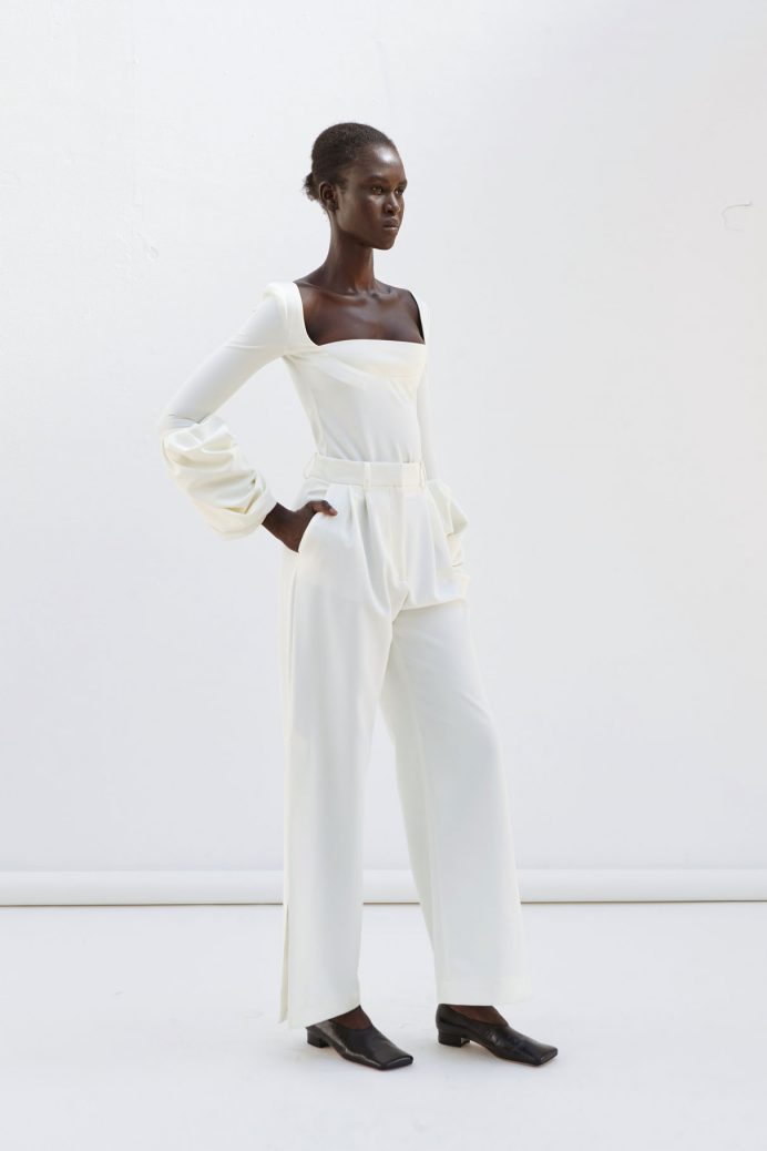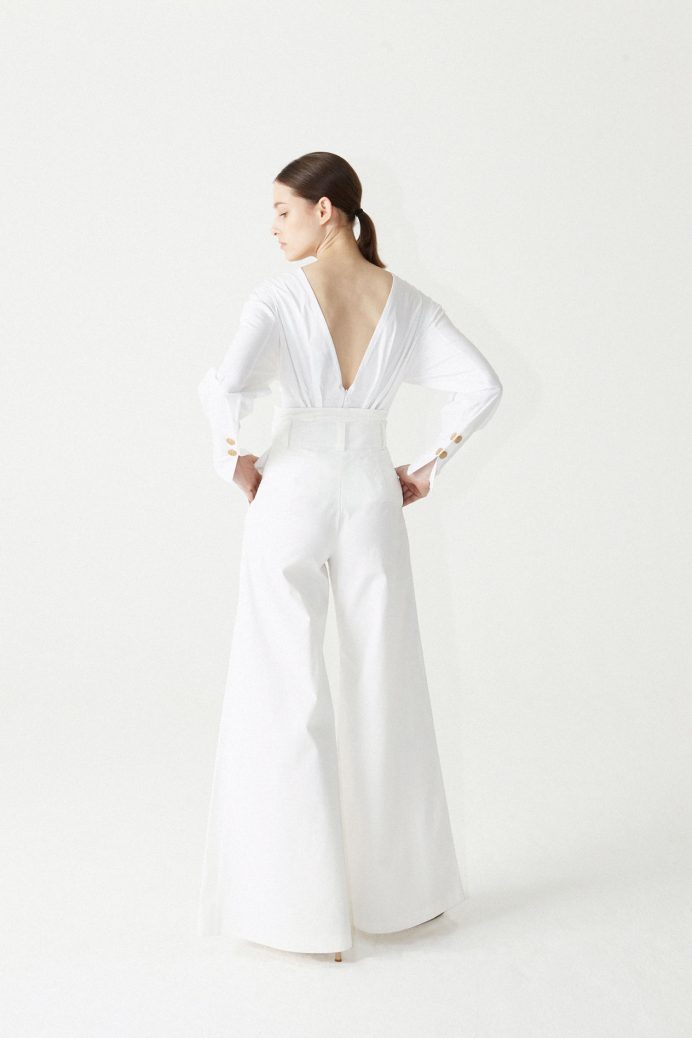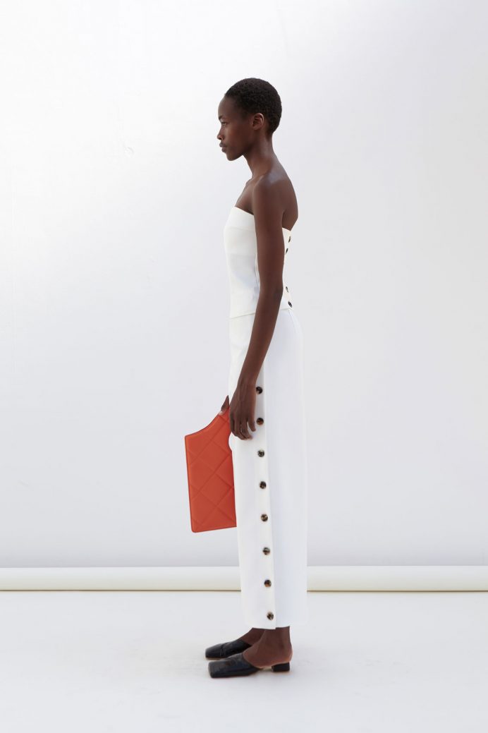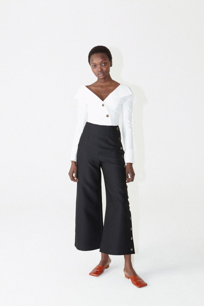 Wide Leg Trousers With Side Slit and Contrast Buttons