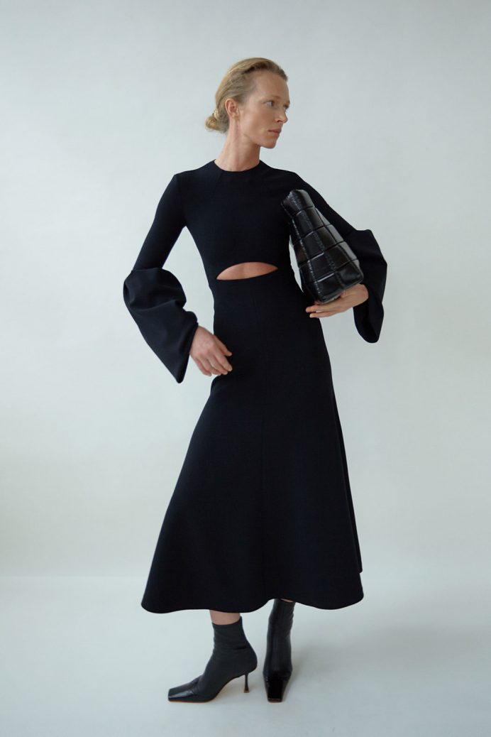 PUFF SLEEVE DRESS WITH WAIST SLIT