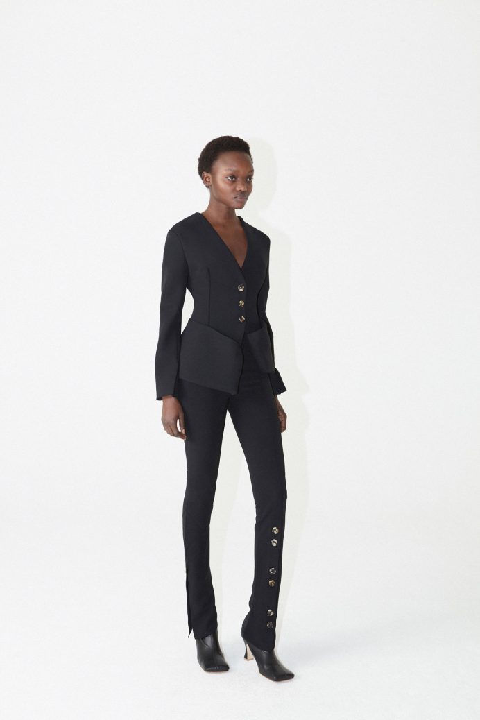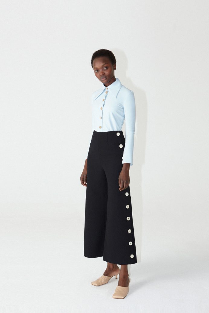 Wide Leg Trousers With Side Slit and Contrast Buttons
